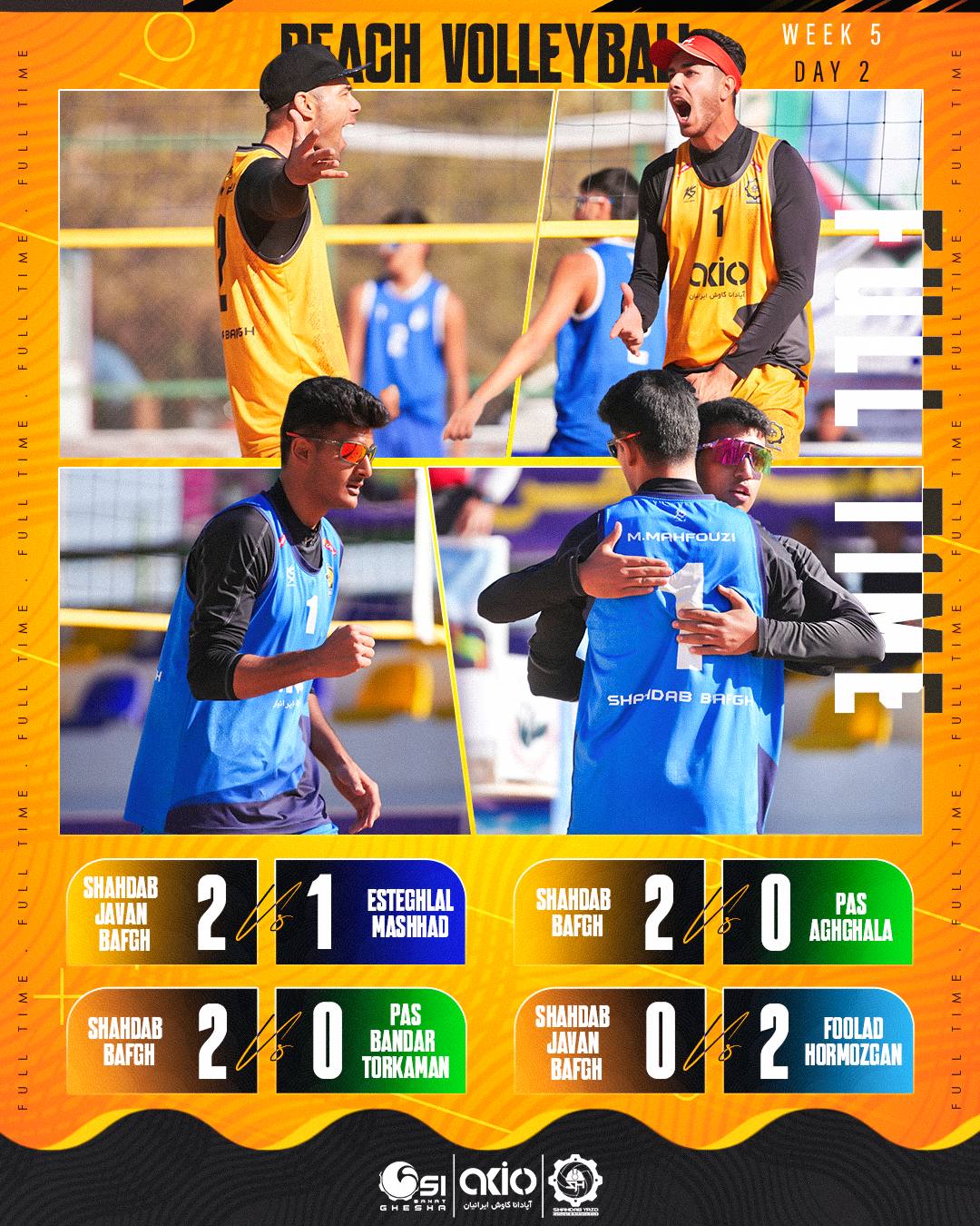 📋نتیجه دیدارهای نیمه نهایی تیم های والیبال ساحلی شهداب بافق و شهداب جوان بافق در هفته پنجم...
