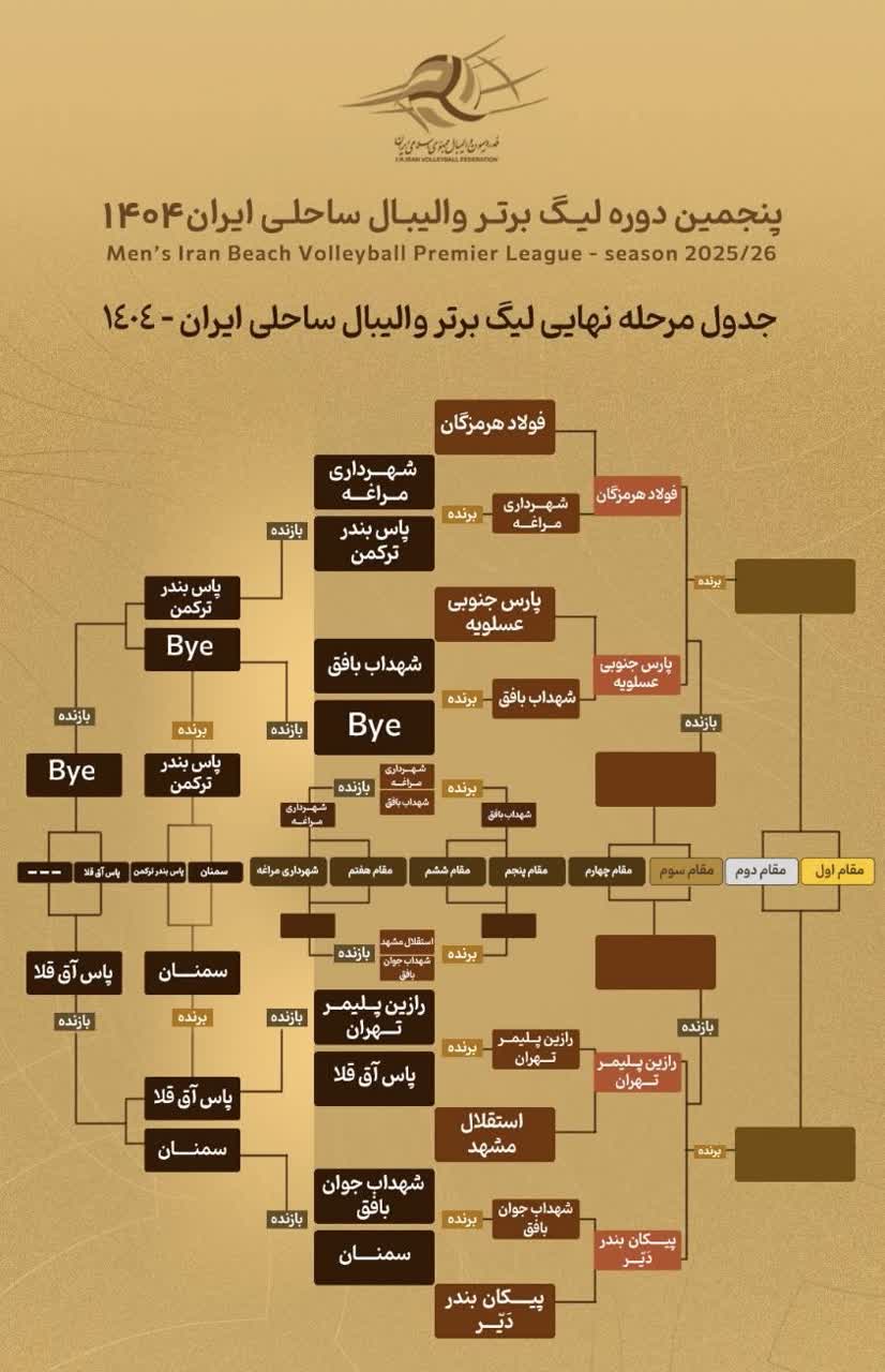 🔥اعلام رتبههای پنجم تا هشتم پنجمین دوره لیگ برتر والیبال ساحلی ایران؛ 🎖️شهداب بافق پنجم مشترک و...