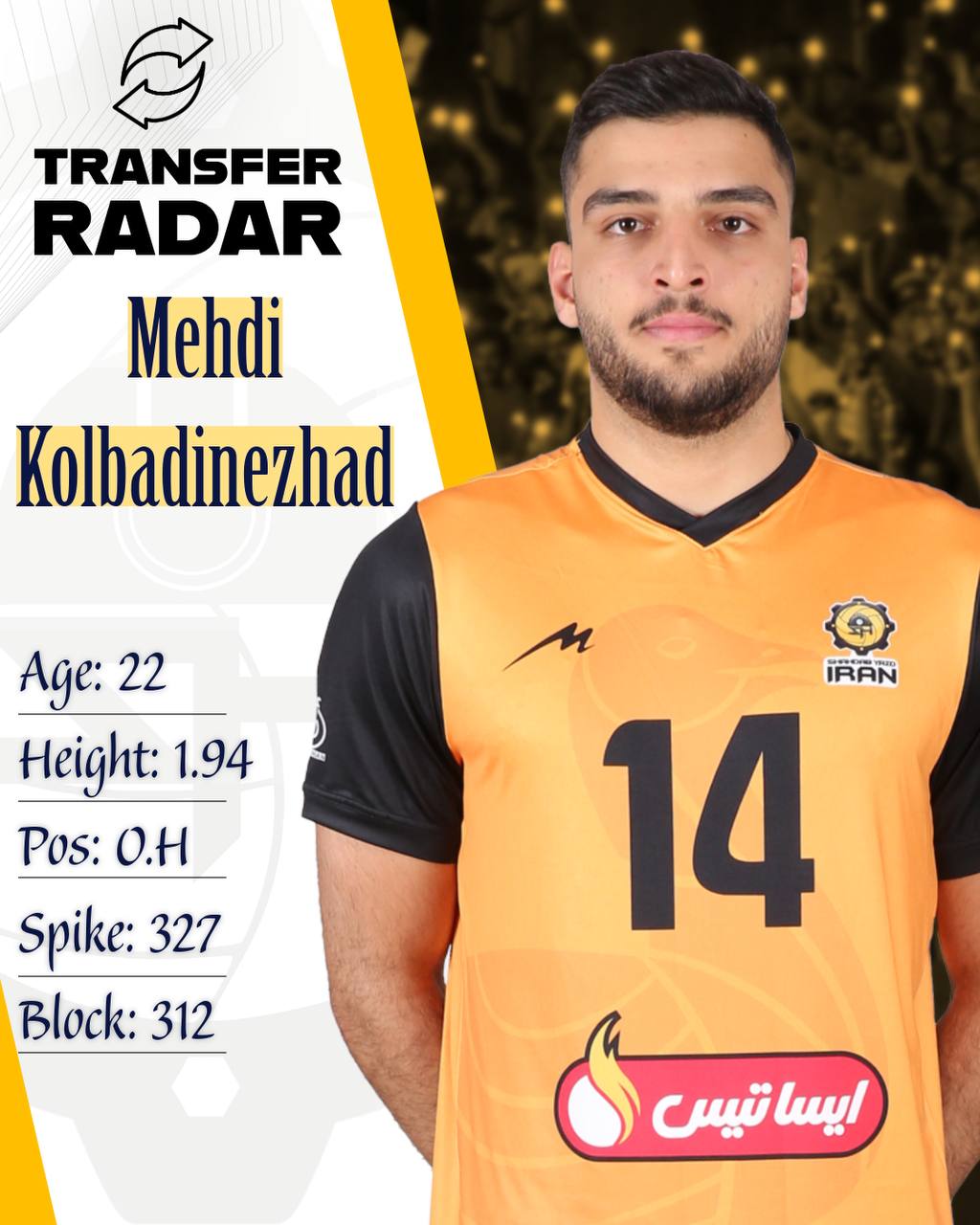 تیم والیبال #شهداب_یزد و مهدی کلبادی نژاد نیز همانند سال گذشته پیراهن