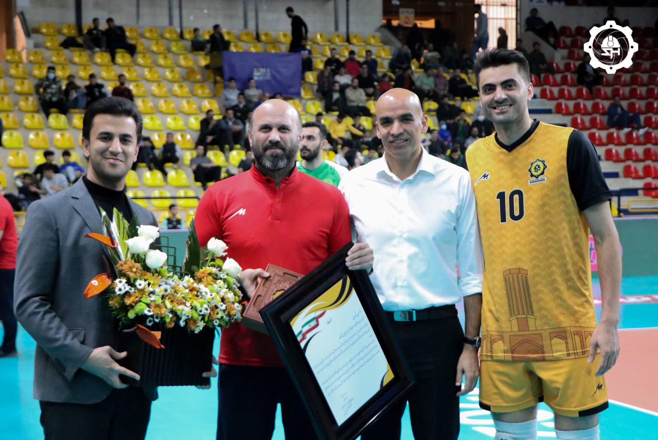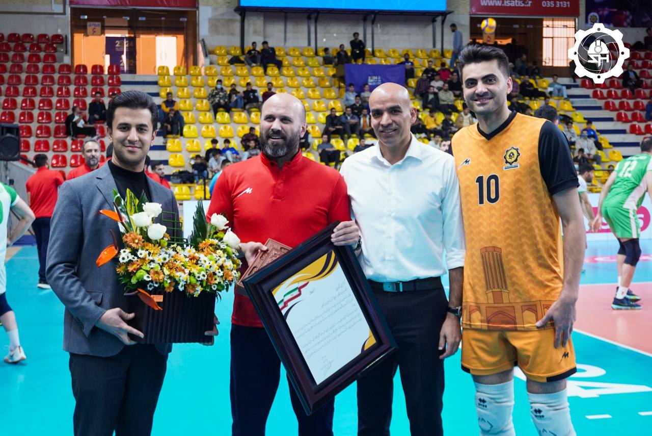 تجلیل از عیسی سنگدوینی به پاس خدمات ارزنده برای والیبال کشور و همراهی با باشگاه شهداب یزد