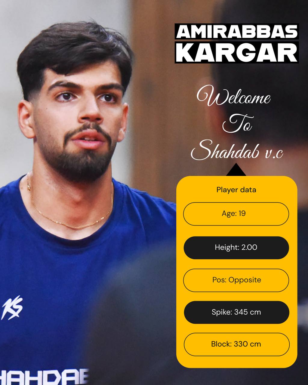 لازم به ذکر می باشد که احمدرضا میرحسینی شماره (بیســـــت و(۲۲)دو) و امیرعباس کارگر شماره (هِ(۱۷)فــــــــده) تیم والیبال شهداب یزد را بر تن خواهد کرد.