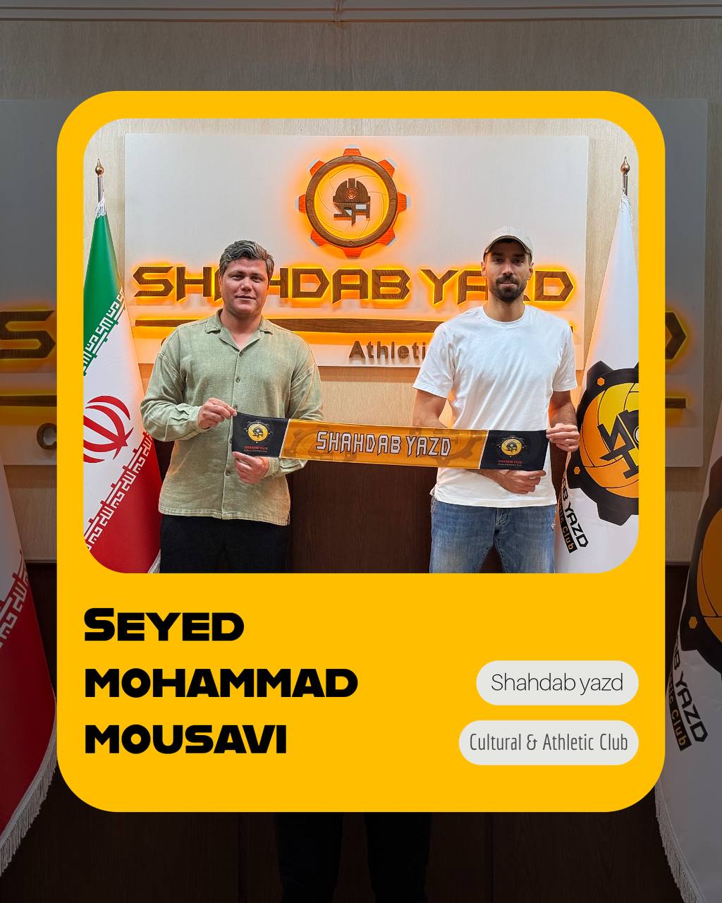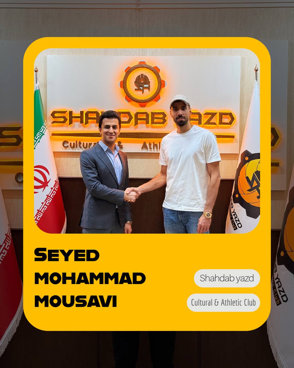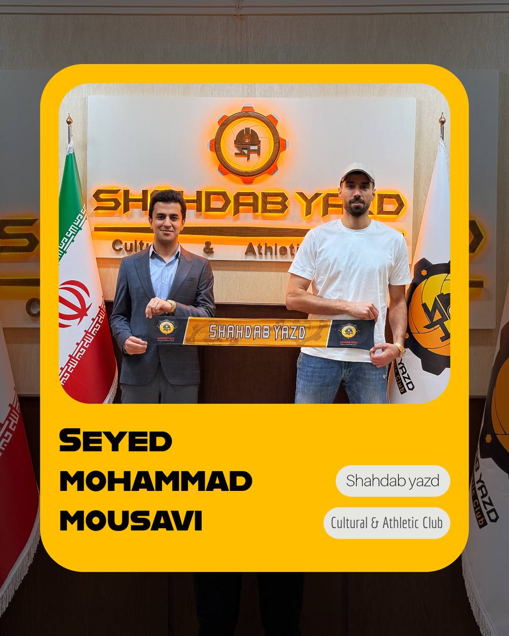 به گزارش روابط عمومی باشگاه فرهنگی ورزشی شهداب یزد؛پس از مذاکرات انجام شده و تایید مدیریت باشگاه، #سید_محمد_موسوی دفاع وسط افسانه ای والیبال کشورمان که به عقیده ی بسیاری از کارشناسان بهترین والیبالیست تاریخ ایران و آسیا می باشد که به همراه تیم ملی والیبال کشورمان، افتخارات متعددی از جمله چندین مرتبه بهترین دفاع وسط ایران، آسیا و حتی جهان را به دست آورده است و همچنین ۱۳ عنوان قهرمانی رقابت های لیگ برتر را در کارنامه خود دارد، با قراردادی یکساله به عنوان بازیکن پست دفاع وسط به تیم والیبال #شهداب_یزد پیوست.