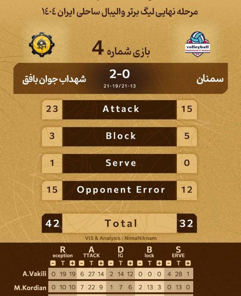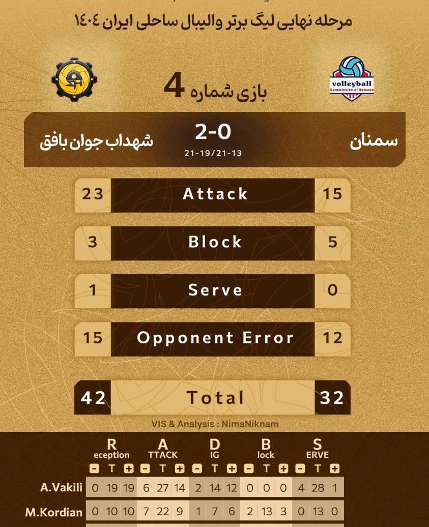در دیدار برگشت نیز نماینده شهداب با ارائه نمایشی منسجم و کمنقص، بار دیگر با نتیجه ۲ بر صفر و امتیازات ۲۱-۱۹ و ۲۱-۱۶ برابر سمنان به برتری رسید تا مقتدرانه راهی مرحله یکچهارم نهایی شود.