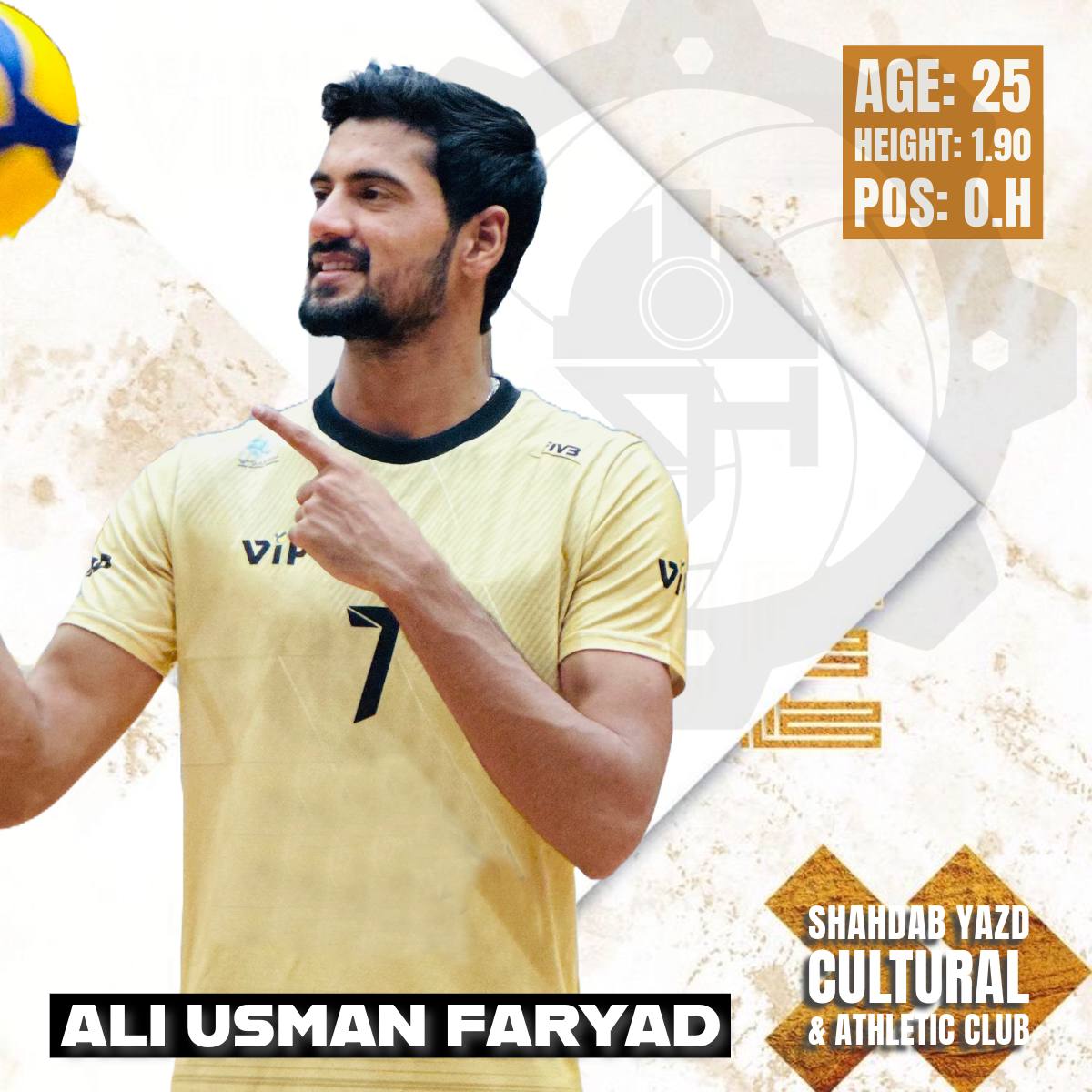 به گزارش روابط عمومی باشگاه فرهنگی ورزشی شهداب یزد و پس ازمذاکرات انجام شده با تایید مدیریت باشگاه؛ علی عثمان فریاد دریافت کننده قدرتی تیم ملی پاکستان که فصل گذشته در تیم والیبال هورسان رامسر در لیگ برتر والیبال ایران توپ می زد و بر اساس آمار و ارقام تاثیر گذار ترین بازیکن دور گروهی رقابت های فصل گذشته لیگ برتر والیبال ایران بود؛ با عقد قراردادی رسمی و یکساله به عضویت تیم والیبال شهداب یزد درآمد تا هم در رقابت های جام باشگاه های آسیا آینده و هم در لیگ برتر سال آینده تیم والیبال شهداب یزد را همراهی کند.