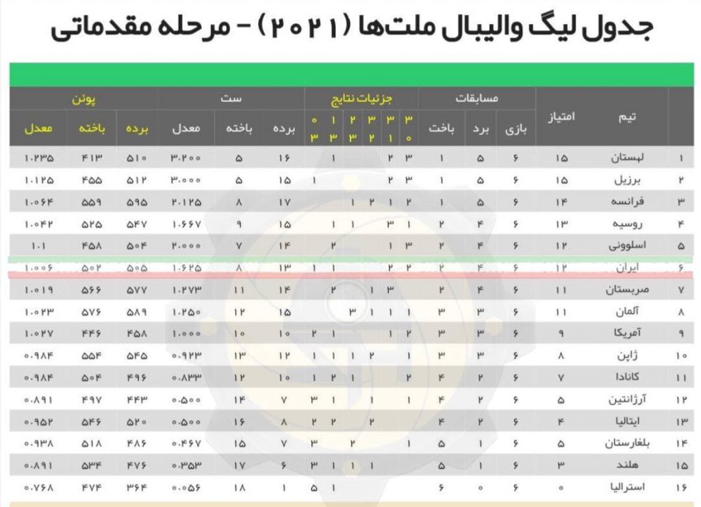 ایران با یک پله صعود در جایگاه ششم…