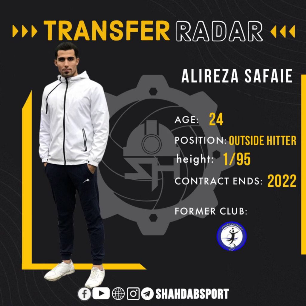 همچنین علیرضاصفایی دریافت قدرتی جوان و خوش استایل فصل گذشته شهرداری ورامین نیز با عقد قرار دادی یکساله به تیم والیبال شهداب یزد پیوست.