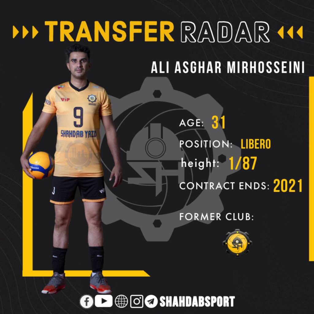 با تصمیم کادر فنی تیم والیبال شهداب یزد قرارداد علی اصغرمیرحسینی لیبرو بومی و با تجربه تیم والیبال مقاومت شهداب یزد برای یک فصل دیگر تمدید شد تا این لیبرو متعصب امسال را نیز در دیار خود به والیبال ادامه دهد.