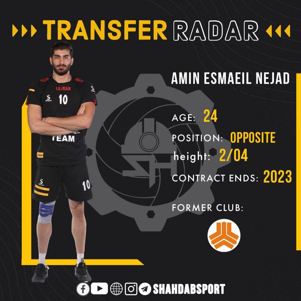 با نظر کادر فنی تیم والیبال مقاومت شهداب یزد، امین اسمعیل نژاد پشت خط زن و ستاره فصل گذشته سایپا تهران و حال حاضر تیم ملی والیبال ایران با عقد قراردادی رسمی و دوساله به شهداب یزد پیوست. همچنین قرارداد سلیم چپرلی دریافت قدرتی جوان و ملی پوش گنبدی تیم والیبال مقاومت شهداب یزد نیز برای دو فصل دیگر تمدید شد.