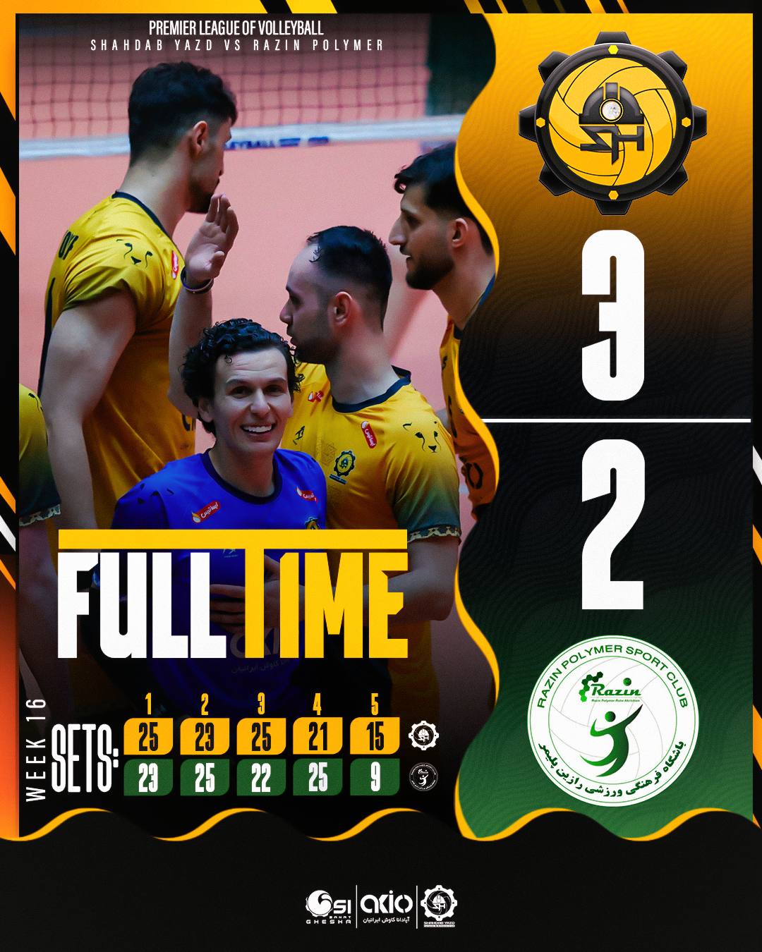 نتایج پایان یافته دیدارهای هفته شانزدهم رقابت های لیگ برتر والیبال مردان ایران ۱۴۰۴/۰۵: