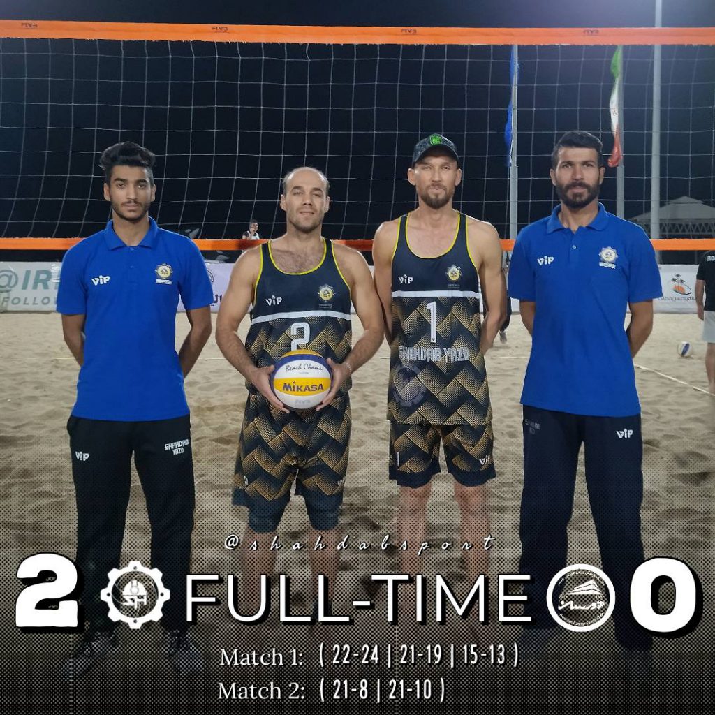 ترکیب تیم والیبال ساحلی شهداب یزد در این دیدار: بهمن سالمی،آرش وکیلی، طاها مهری