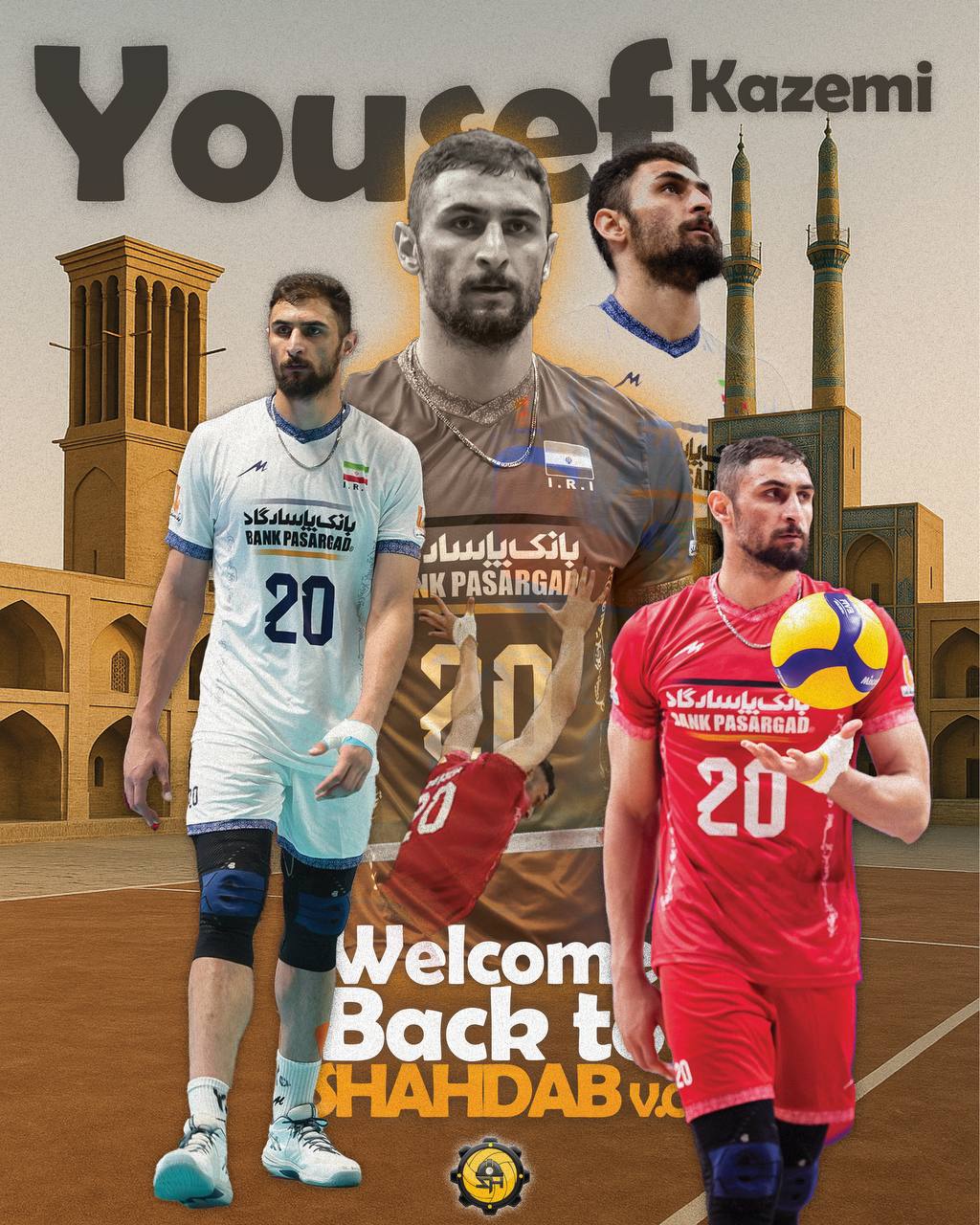 به گزارش روابط عمومی باشگاه فرهنگی ورزشی شهداب یزد و با تایید مدیریت باشگاه؛ #یوسف_کاظمی دفاع وسط ۲.۹ سانتی والیبال ایران که پرورش یافته باشگاه فرهنگی ورزشی شهداب یزد می باشد و در فصل گذشته به صورت قرضی از این تیم جدا شده بود و در تیم مهرگان نور بازی کرد، با توجه به عملکرد بسیار درخشان در سال گذشته در تیم مهرگان نور و تیم ملی والیبال، در تمامی فاکتورها بالاخص دفاع روی تور، با نظر کادرفنی تیم پس از دو فصل دوری به خانه خود تیم والیبال #شهداب_یزد بازگشت.