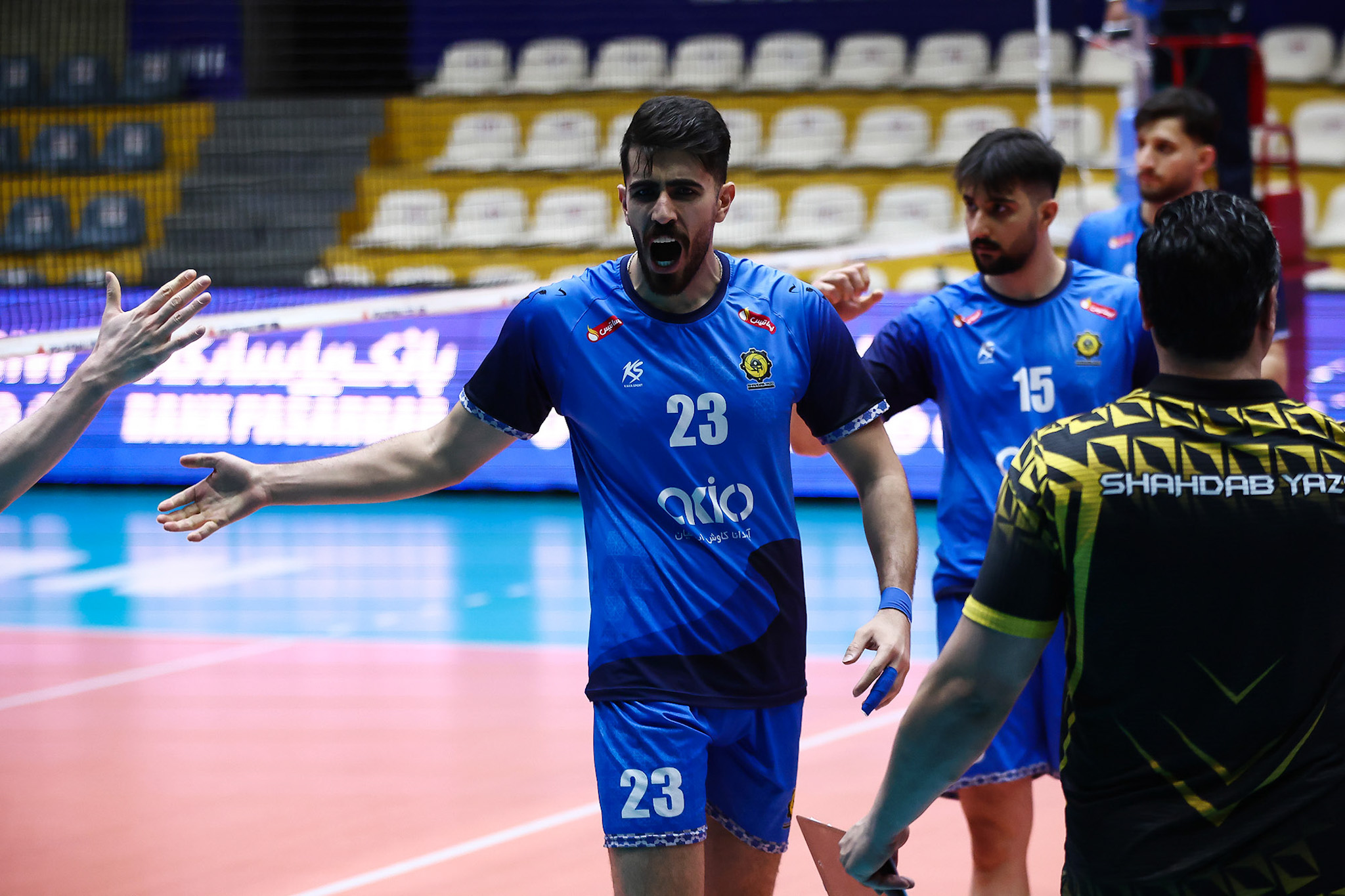 هفته نوزدهم / ساعت ۱۹:۰۰ دوشنبه ۱۴۰۴/۱۲/۰۴ پاس گرگان 🆚 شهداب استان یزد عکاس: سپیده عبدالحی سالن یزدانی خرم، تهران ۵ اسفند ۱۴۰۴ Shahdab Yazd، گالری تصاویر