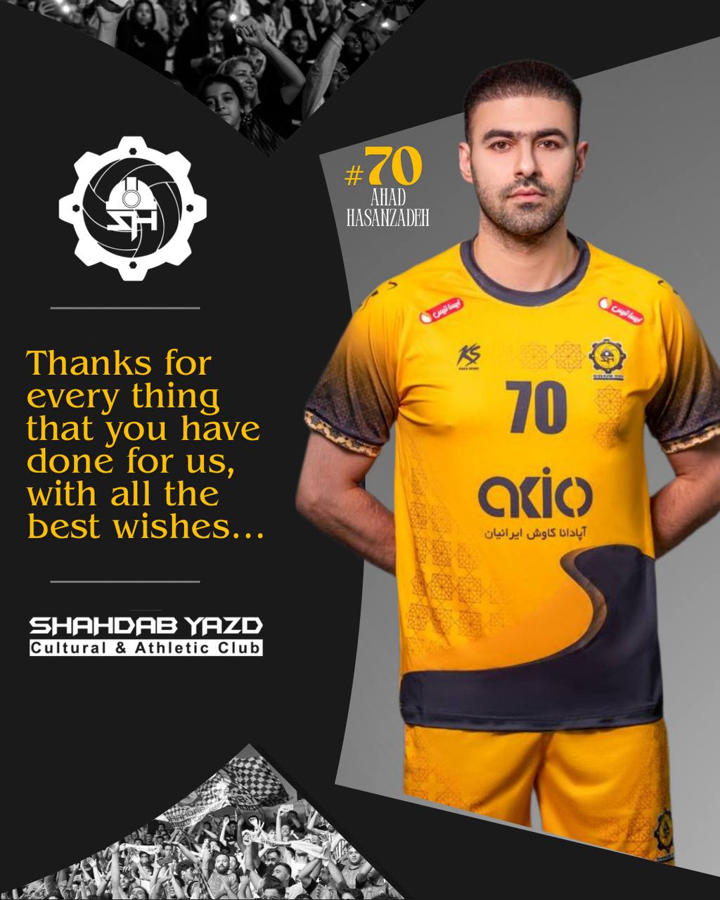 باشگاه فرهنگی ورزشی شهداب یزد ضمن قدردانی از تلاشها و زحمات این بازیکن در مدت حضورش در جمع شهدابیها، برای وی در ادامه مسیر حرفهای و زندگی شخصی، آرزوی موفقیت، سلامتی و توفیق روزافزون را دارد.