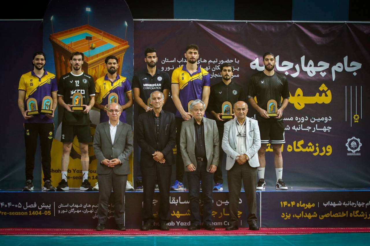 تیم رویایی مسابقات والیبال جام چهارجانبه شهداب یزد پیش فصل ۰۵-۱۴۰۴ اعلام شد: 🎖ارزشمندترین بازیکن: 👤عرشیا بهنژاد ( #شهداب_یزد ) 🎫بهترین لیبرو: 👤شاهین توانا (پیکان تهران) 🎫بهترین مدافعان: 👤یوسف کاظمی ( #شهداب_یزد ) 👤محراب ملکی (مهرگان نور) 🎫بهترین قدرتیزن ها: 👤علی عثمان فریاد ( #شهداب_یزد ) 👤متین حسینی (پیکان تهران) 🎫بهترین پاسور: 👤عرشیا بهنژاد (…