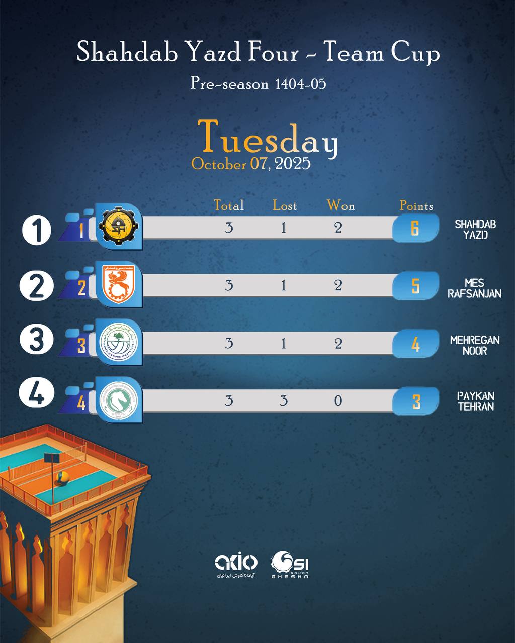 📊جدول رده بندی دومین دوره رقابت های جام چهارجانبه شهداب یزد در پایان این رقابت ها که با قهرمانی تیم والیبال شهداب یزد همراه بود…